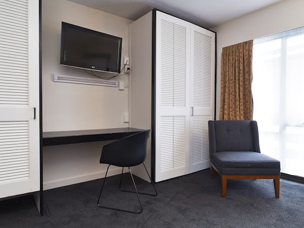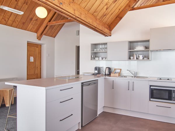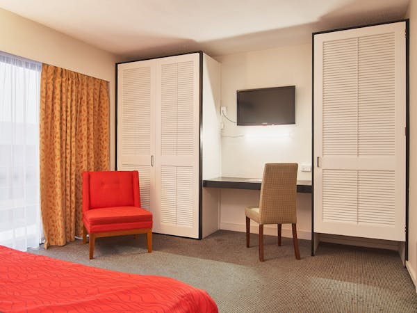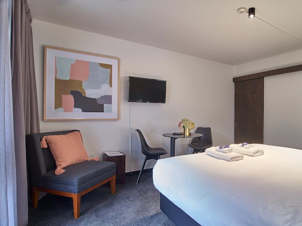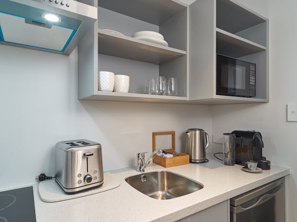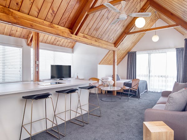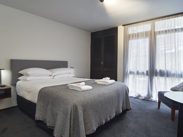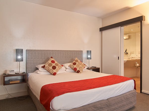 Our one bedroom apartment offers a spacious and open living style of accommodation. Situated on the top floor of the hotel. Separate Queen bedroom and en suite, full kitchen facilities, outside balcony with views and air Conditioning.