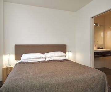 Our One Bedrooms have open living plan dining & lounge area. They offer one King bed and one double bed, with a balcony or terrace with ranch sliding doors.