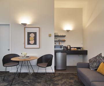 This suite has a private bathroom with overhead shower. There is a lounge area which has the second bed and tea-and-coffee making facilites.